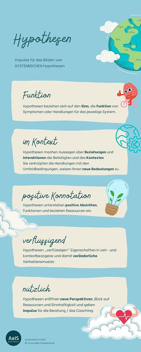 In unserer kleinen Infografik haben wir Euch ein paar Ideen zusammengestellt, wie Eure Hypothesen noch nützlicher für Eure systemische Arbeit werden.